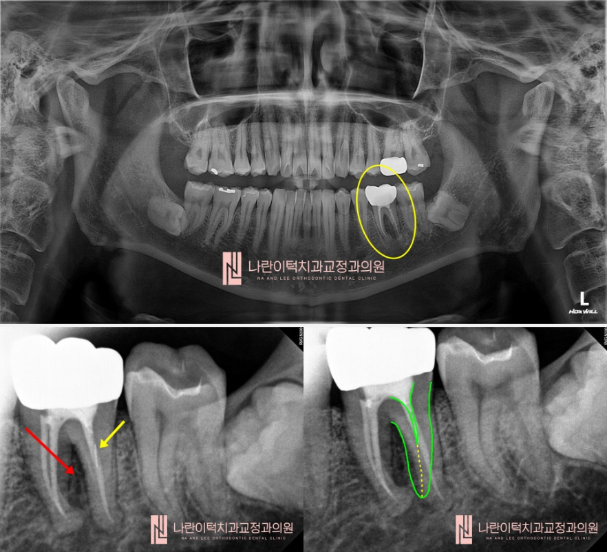 (초록 실선 + 노란 점선) 이 신경관 하나를 찾아서 잘 마무리 해주면 뿌리끝염증이 낫을 것 같습니다!